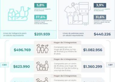 Durante enero de 2026, la variación mensual de la canasta básica alimentaria (CBA) fue de 5,8%, mientras que la de la canasta básica total (CBT) fue de 3,9%. La CBA y la CBT resultaron en variaciones interanuales de Leer más
