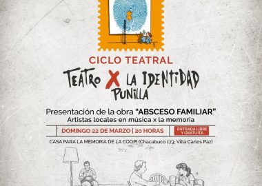 Te invitamos a la presentación de la obra “Absceso Familiar”, a cargo del grupo “La Chela en escena”. También habrá artistas locales en “Música x laLeer más