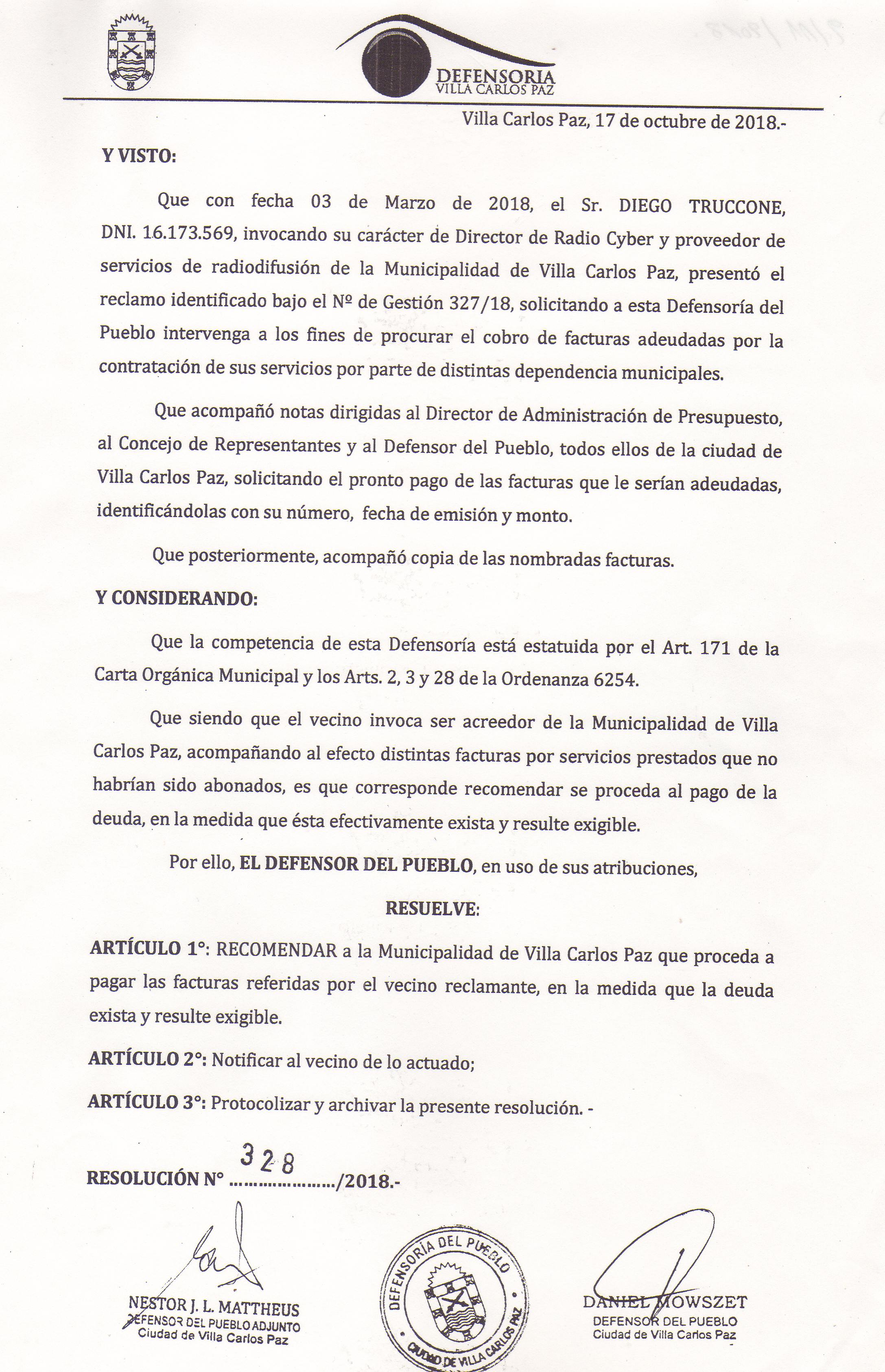 Salvando las diferencias entre un servicio público de recolección de Residuos, y un servicio de Prensa y Difusión de esta emisora, LO QUE EN COMUN SE TIENE ES QUE EL MUNICIPIO RECONOCE LA DEUDA Y RECONOCE AL ACREEDOR Y POR LO TANTO en el caso de Cotreco, muchos millones de pesos, defiende que hay que pagar, pero en el caso de Radio Cyber, algunos Miles de pesos, NI SIQUIERA SE MOLESTAN EN RESPONDER LAS NOTAS, al menos una por año desde el 2014 al 2019, SOLICITANDO QUE SE ABONE LO ADEUDADO.