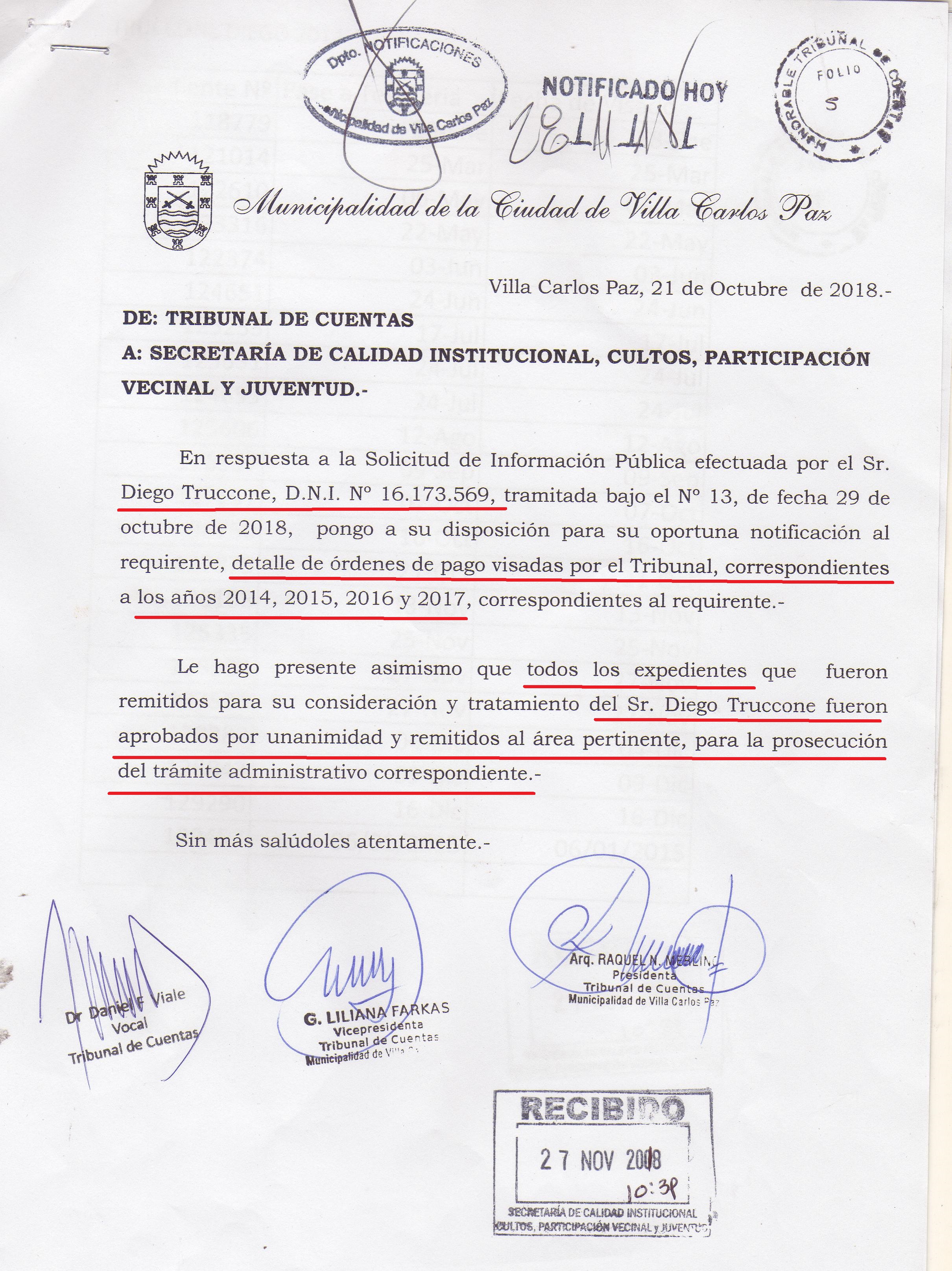 Zacarias Habla de “Razonabilidad del planteo”, me pregunto SI es razonable que el municipio NO pague lo contratado y reconocido en la cuenta general del ejercicio 2018.