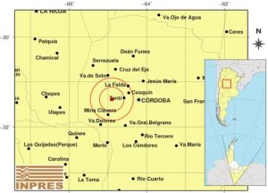 | Epicentro: | 67 km al O de Córdoba; 251 km al NE de San Luis; 31 km al O de Tanti -31.389 (lat) -64.903 (long) | |