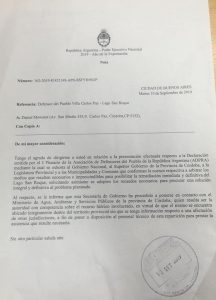 “Hacemos saber a Uds. que continuaremos adoptando las medidas necesarias a los fines de lograr una solución definitiva para este delicado problema, que afecta seriamente a los vecinos de nuestra ciudad y resulta ser prioritario para nuestra institución.””