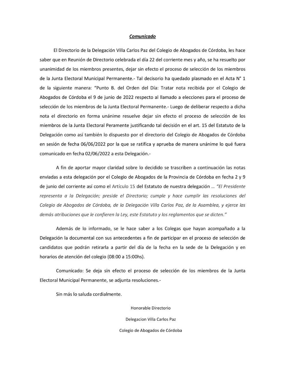 Colegio de Abogados: deja sin efecto el proceso de selección de los miembros de la Junta Electoral Municipal Permanente