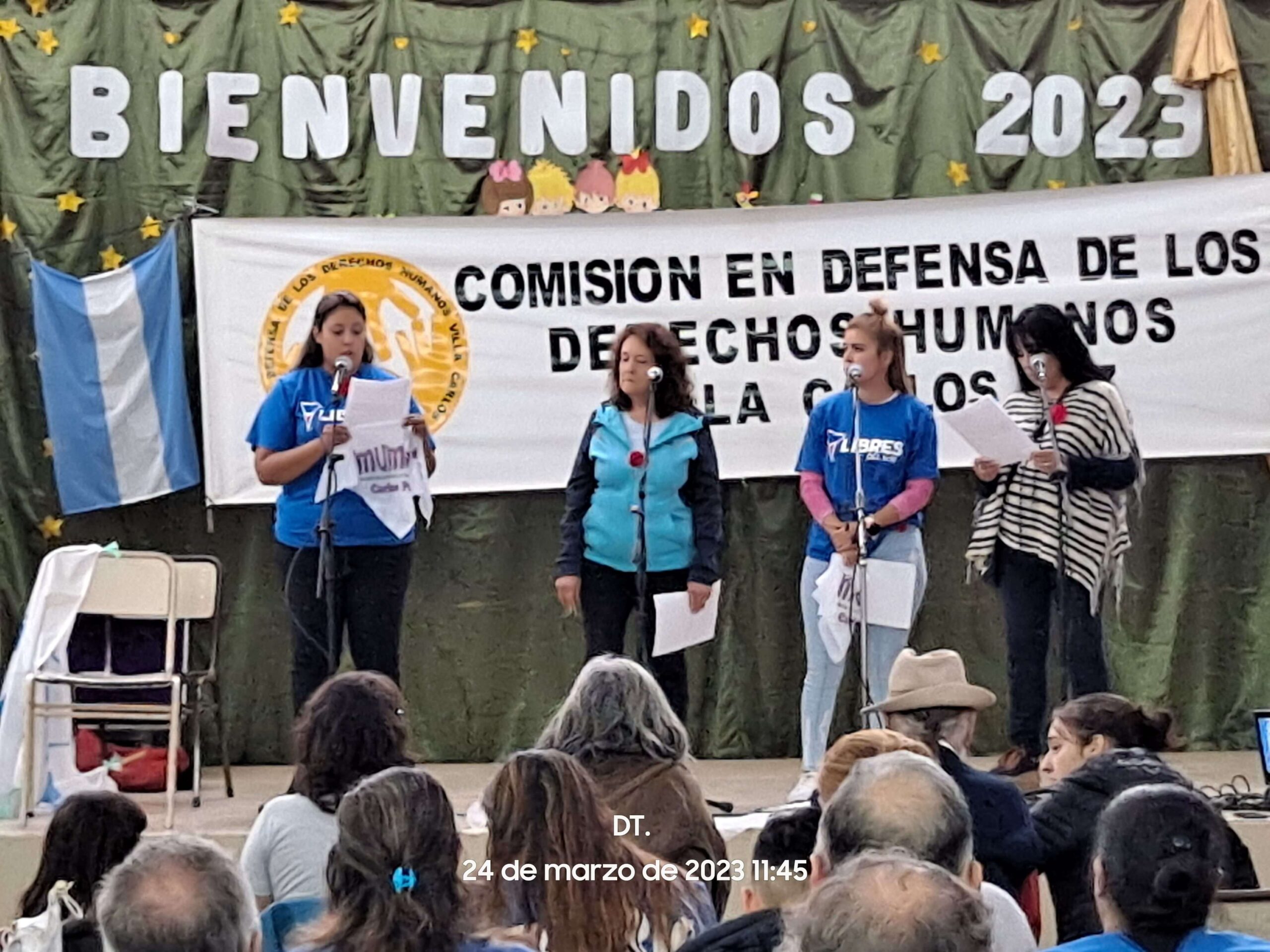 El acto se llevo a cabo en las instalaciones de la escuela Carlos Paz (esto debido a las cuestiones climaticas). Participaron organizaciones, publico en general.