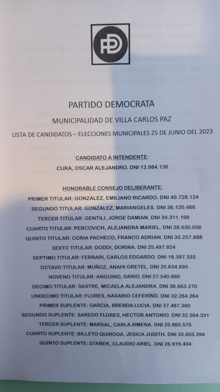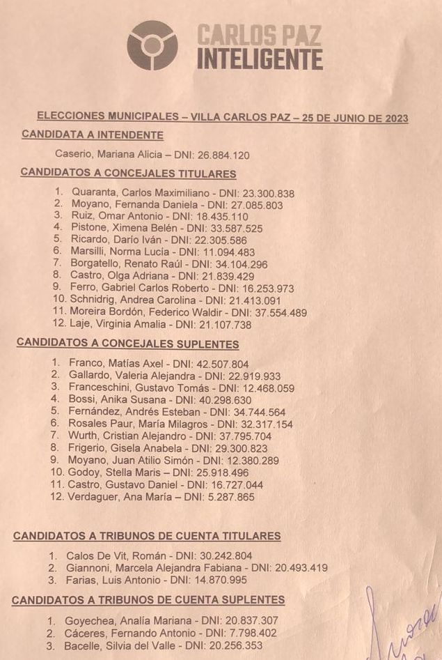 A las 12.30 hs. de este lunes venció el plazo para la presentación, ante la JUNTA ELECTORAL PERMANENTE DE CARLOS PAZ, de las listas de candidatos que aspiran a la intendencia de nuestra ciudad.