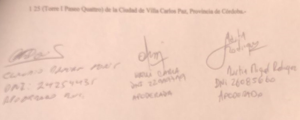 Carla Livelli, Firma Como Apoderada de Carlos Paz Unido, compñada de Lucero.