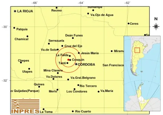 Con epicentro a ocho kilómetros al oeste de Cosquín, a las 4.50 de este lunes se registró un sismo de 3.1 de magnitud informó el INPRES