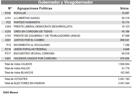 El Tribunal Electoral Provincial, el día martes 4 de julio de 2023, dio por finalizado el ESCRUTINIO DEFINITIVO de las 9060 mesas de votación de los comicios del pasado 25 de junio.