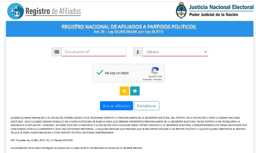 Para saber si estás afiliado a un partido político, ingresá tus datos: