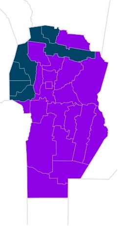 En 6 departamentos del norte de Córdoba: Sobremonte, Tulumba, Cruz del Eje, Minas, Pocho y San Alberto, se impuso Hacemos por Nuestro País, Juan Schiaretti. (color azul)