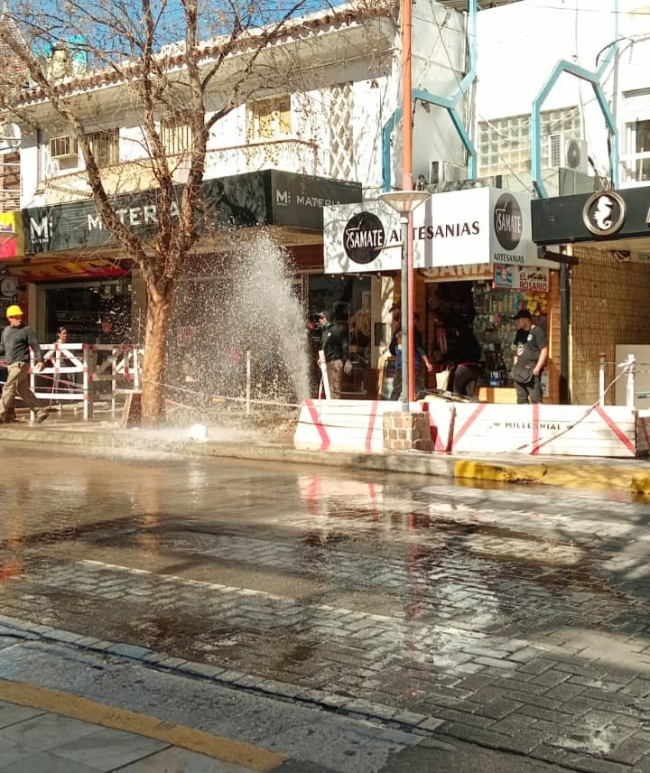 En pleno centro, allí donde han transformado en una zona de guerra las veredas, reventaron un caño de agua y no tiene nada que ver con la “promesa” naranja de “aguas danzantes” informa irnónicamente Bambacoop y se pregunta: ¿Para que existirán los planos?