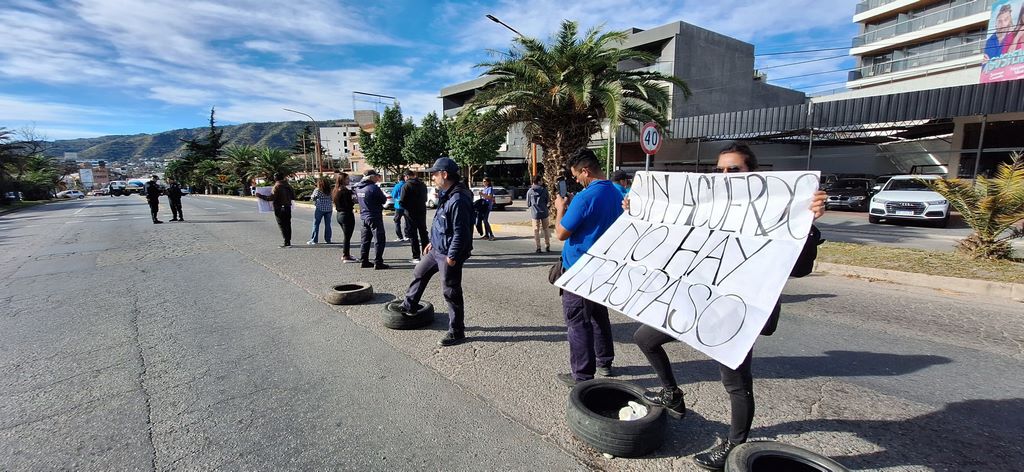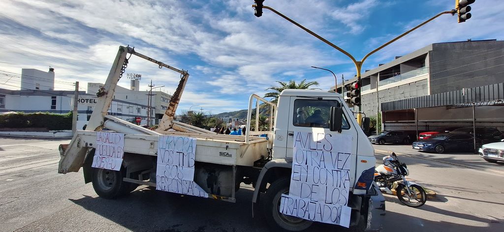 Esta mañana, en el marco del conflicto por el traspaso del servicio de cloacas, trabajadores se manifiestan en el Puente Uruguay, reclamando por sus puestos de trabajo.