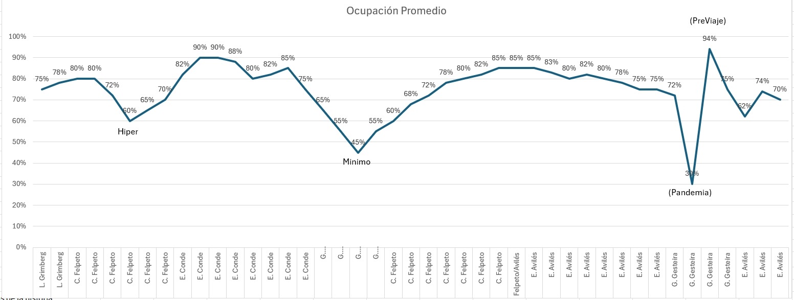 - Ocupación: 80-90% pico histórico (1992-1995), luego 75-85%
