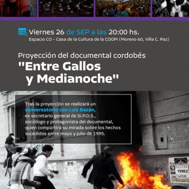 Desde la Casa de la Cultura de la Coopi te invitan a participar de: 📽️ *Proyección + Conversatorio Este viernes 26 de septiembre a las 20:00 horas te invitamos a ver el documental cordobés “Entre Gallos y Medianoche” en Espacio CO – Casa de la Cultura de la COOPI (Moreno 60, Leer más