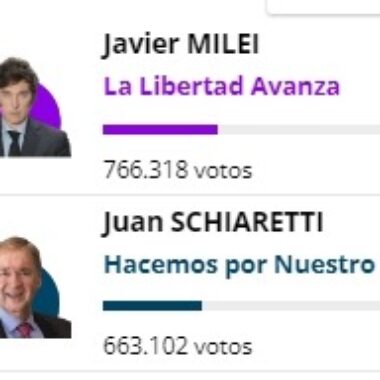 Con el 61% de las mesas escrutadas Javier MILEI superó todos los pronósticos. La Libertad Avanza (32,6%), Milei obtiene más del 32% de los votos. Juntos por el Cambio (27,6%) , Patricia Bullrich obtiene 17% de los sufragios y Horacio Rodríguez Larreta el 10.5%. Unión por la Leer más